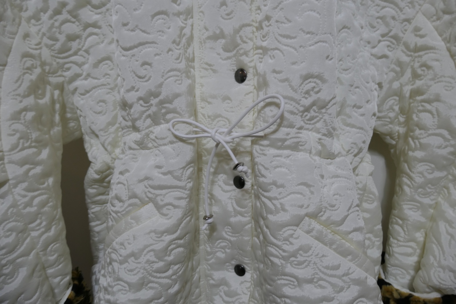 草花模様のキルティング生地を使用したジャケット。