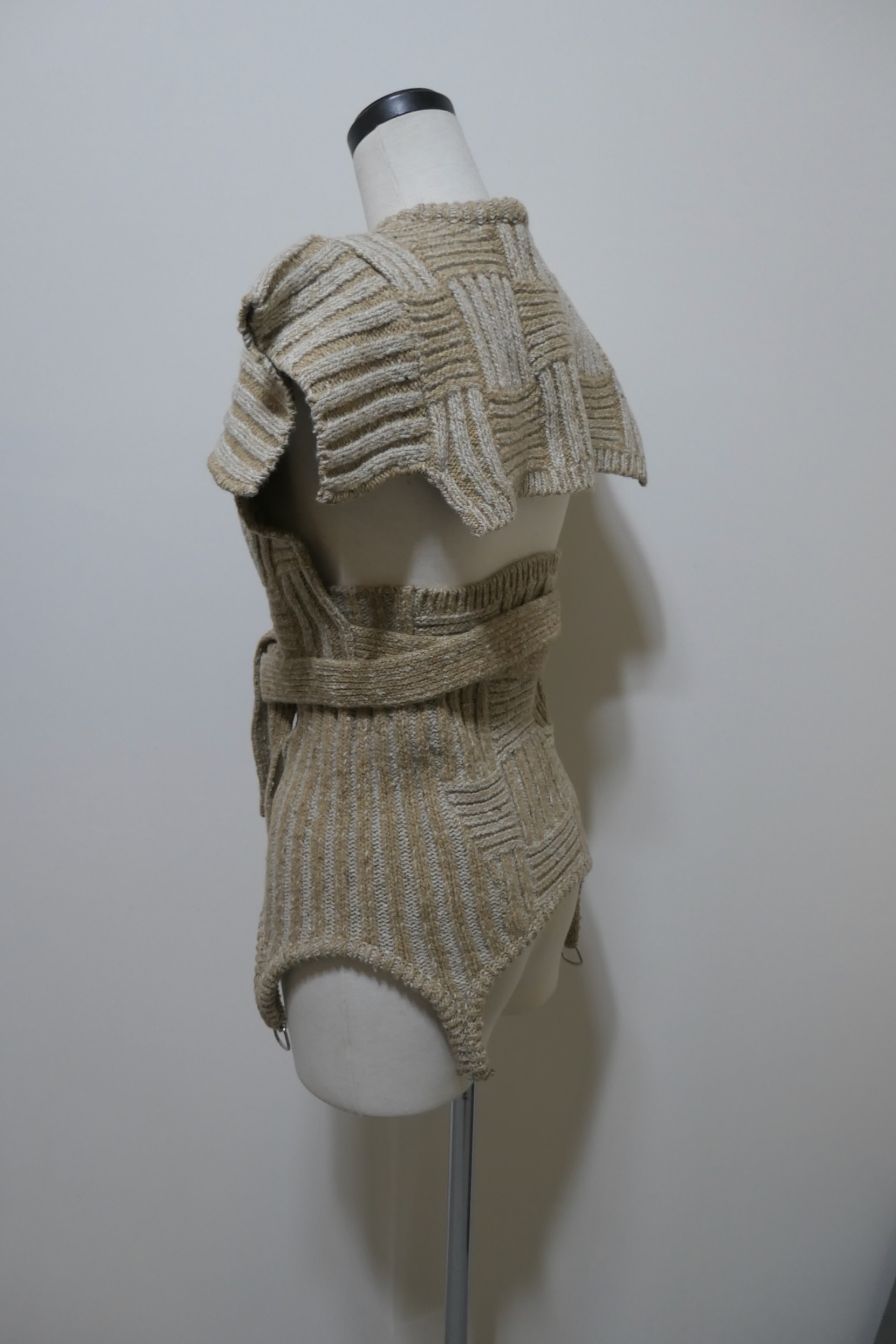 カラフルな糸がちりばめられたやわらかなネップ糸で編まれたニットのビスチェ。