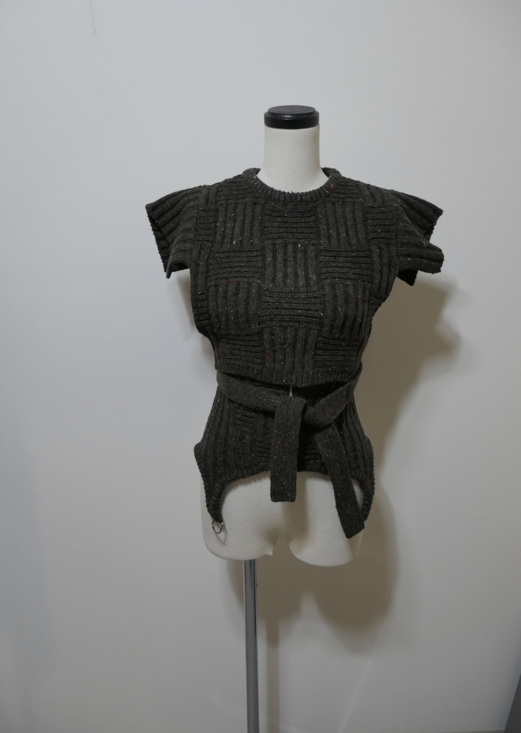 カラフルな糸がちりばめられたやわらかなネップ糸で編まれたニットのビスチェ。