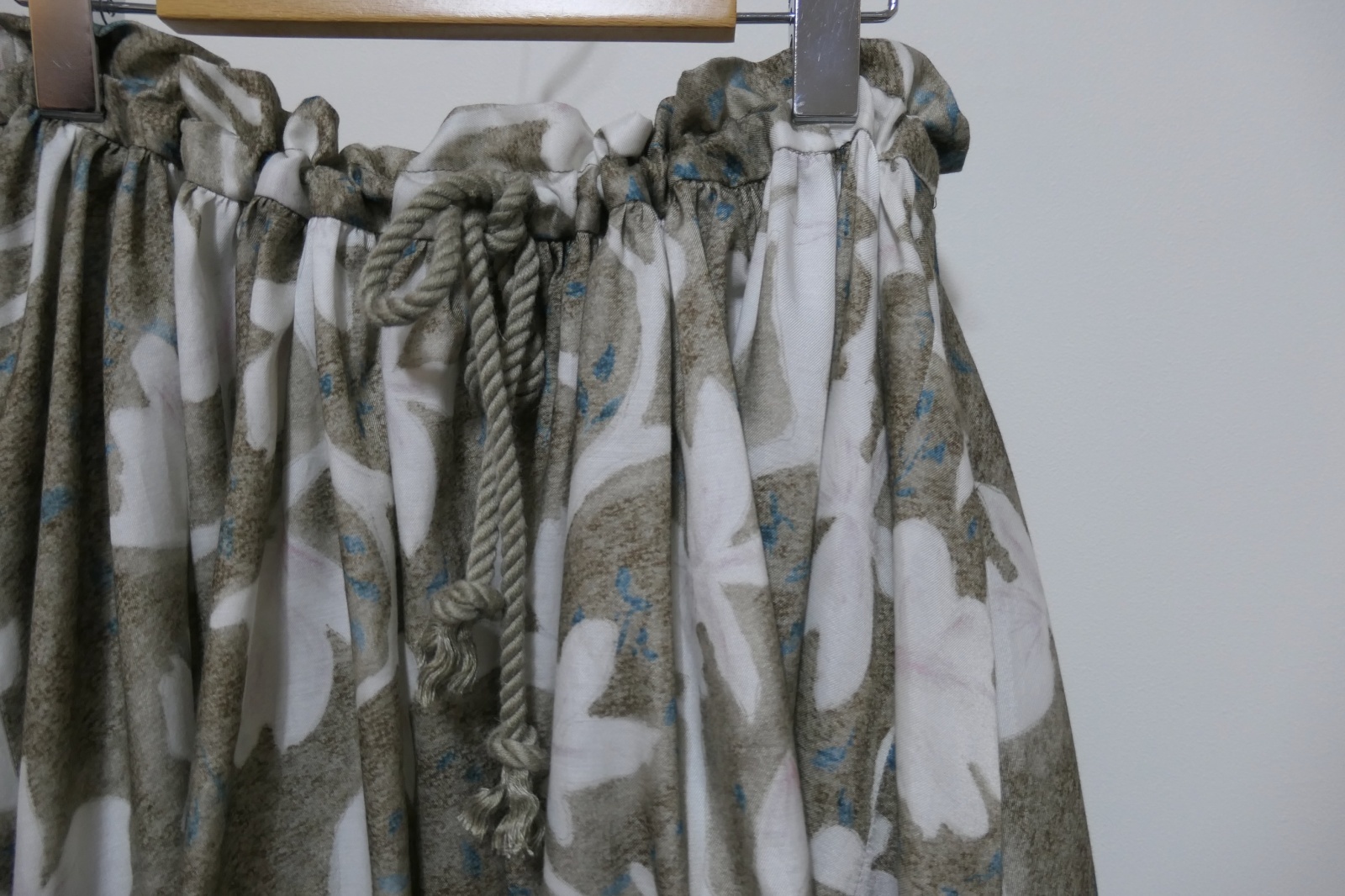 ウエストは紐で結ぶ仕様でお好みのサイズ感に調整出来ます。