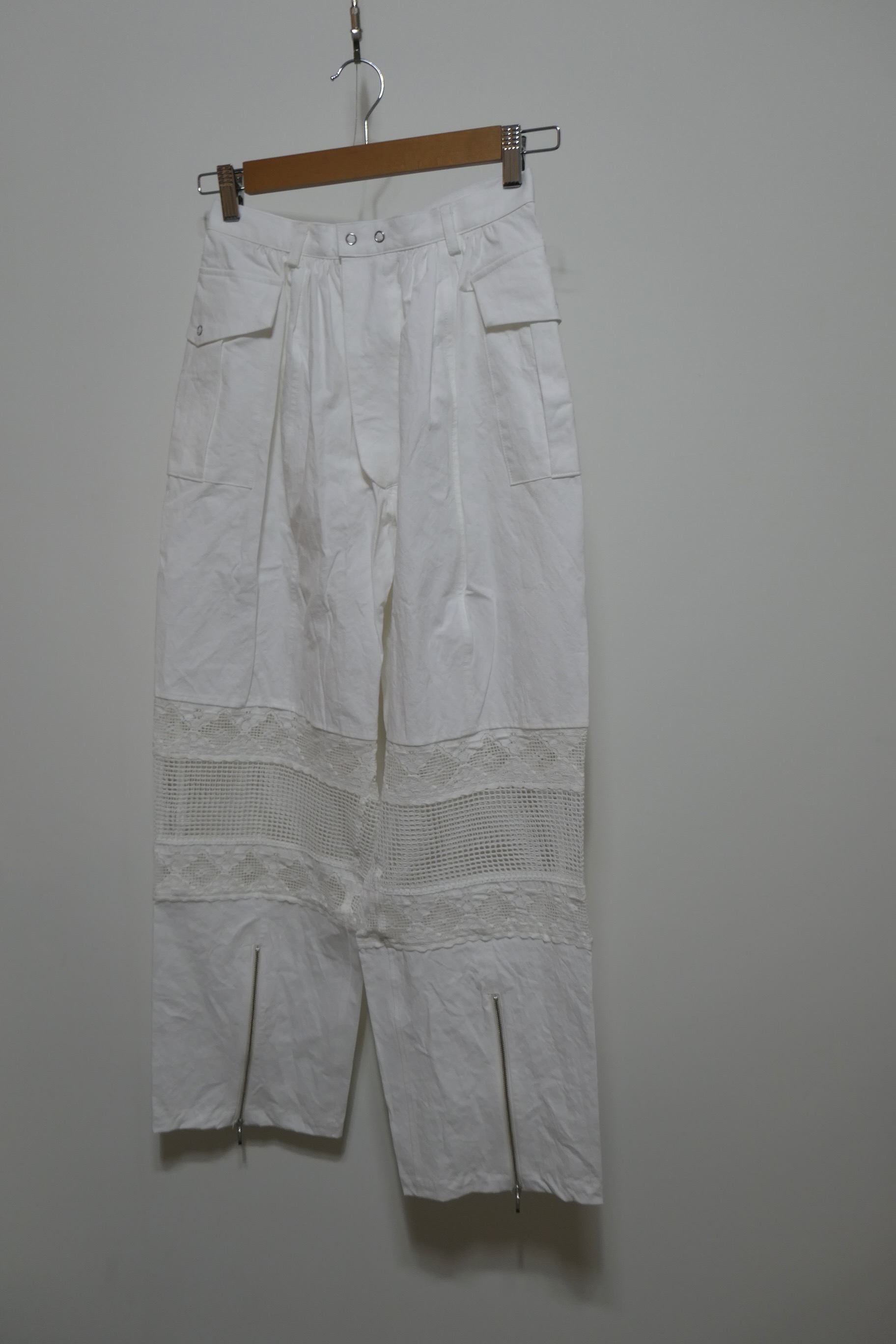 DECO depuis1985 COTTON LINEN DYED HORSE CLOTH LACE PANTS [DC26SSFPT14 WHITE フリーサイズ]