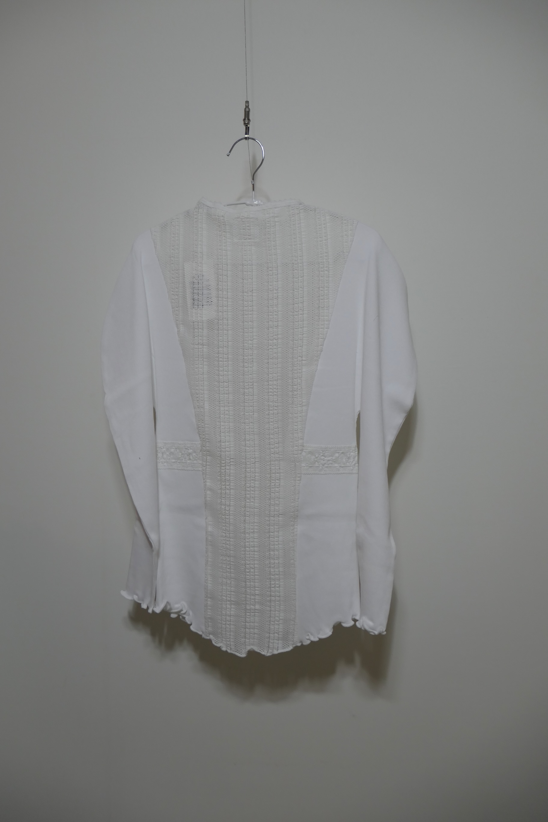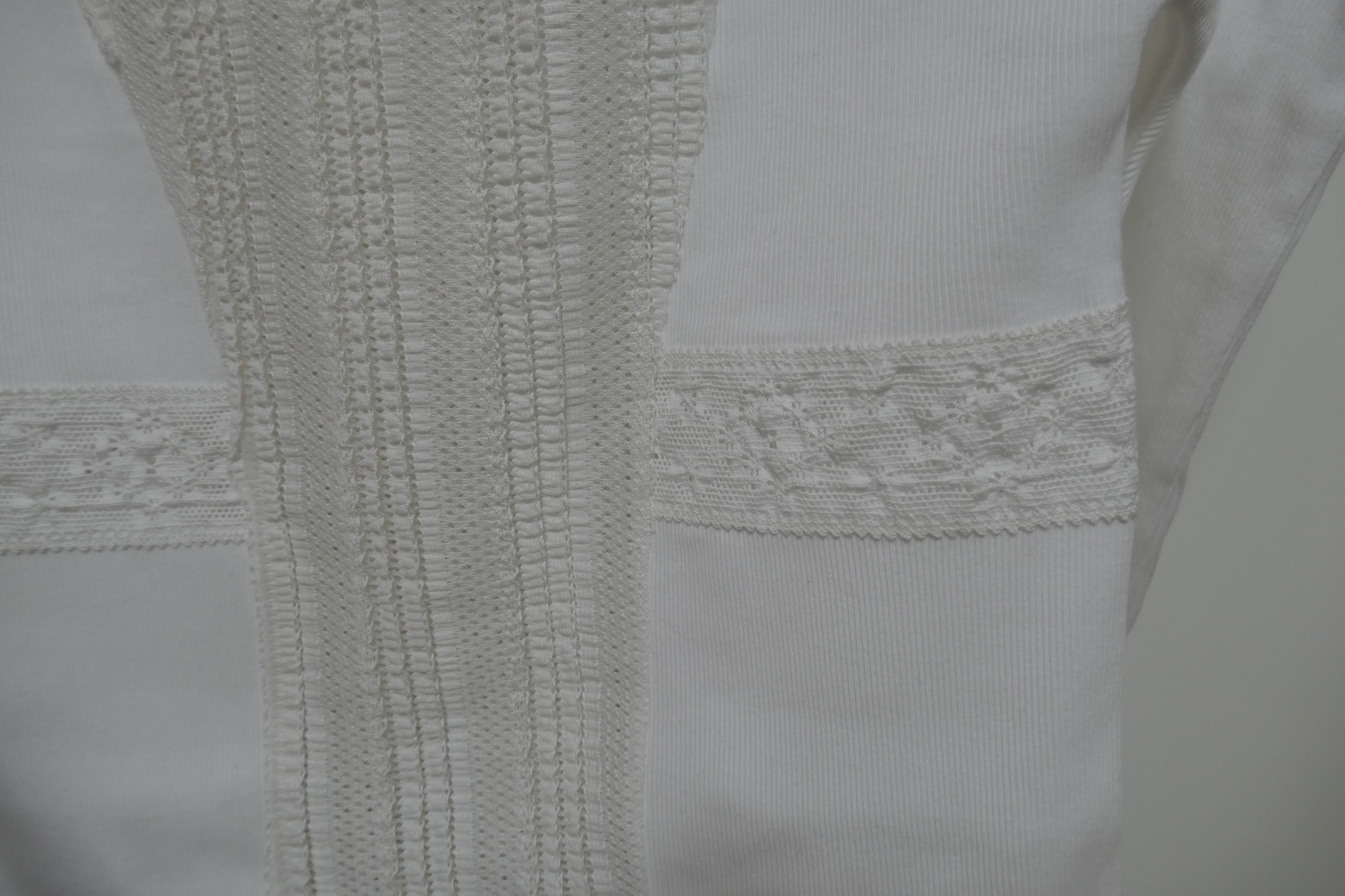 2種の伸縮性のあるストレッチレースとテープを配したカットソー。